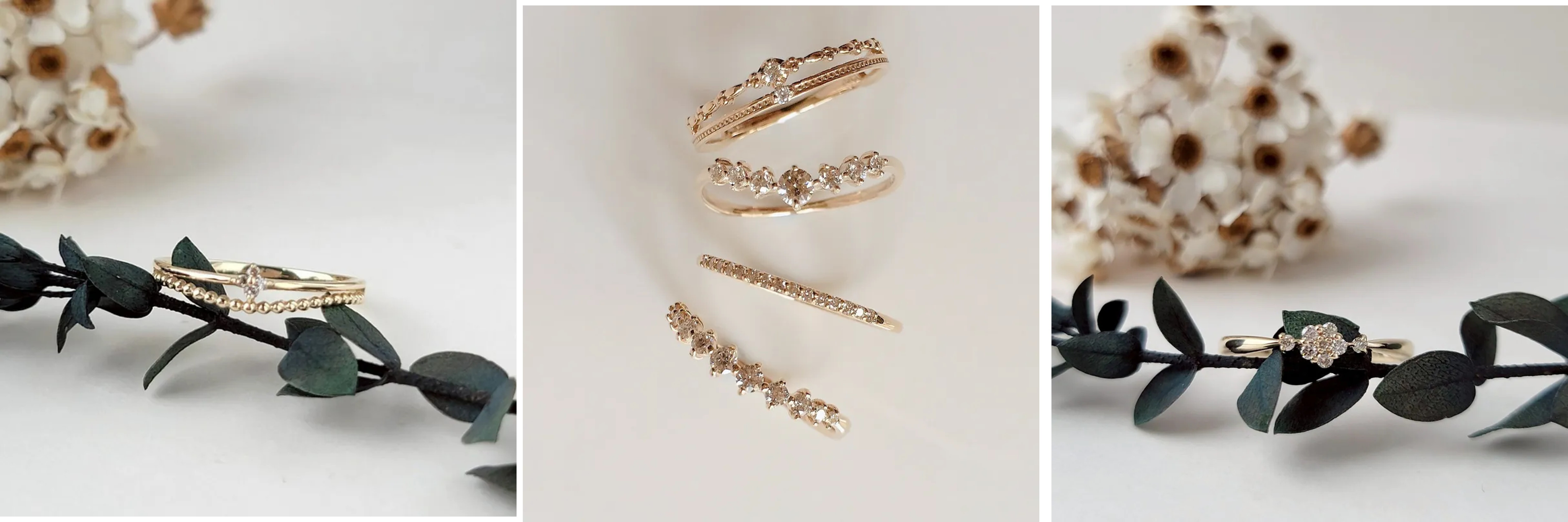 ▲K10雙層幸運草2分鑽石戒 ▲K10鑽石20分繁星戒 ▲K10鑽石7分薔薇戒