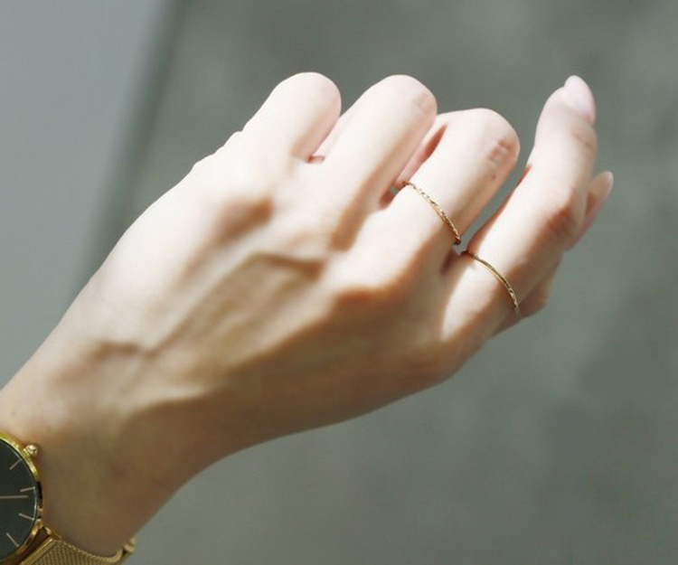 單顆鑽石在扭曲的線條上熠熠生輝,會隨著手指擺動而產生不同角度的光澤,因為簡單的造型,不論是在工作場合或是其他正是或休閒,都非常適合各種風格