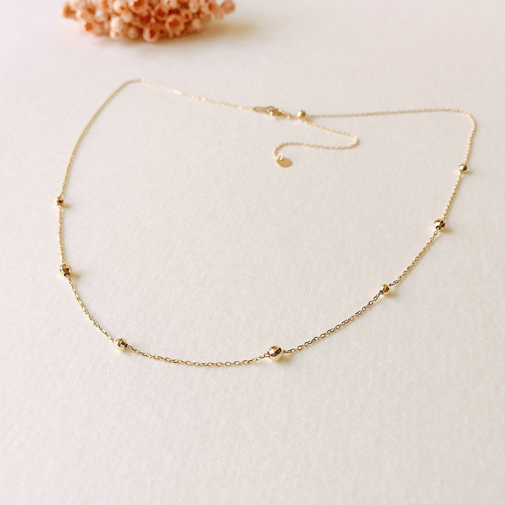 由7顆完美的三角折射金球,利用2種不同尺寸的金球交互搭配,而每顆金球都可以轉動形成你專屬的小宇宙,45公分的鍊長,可自由調節調整出個人喜愛的長度,亦可環繞兩圈形成長短疊搭的視覺感