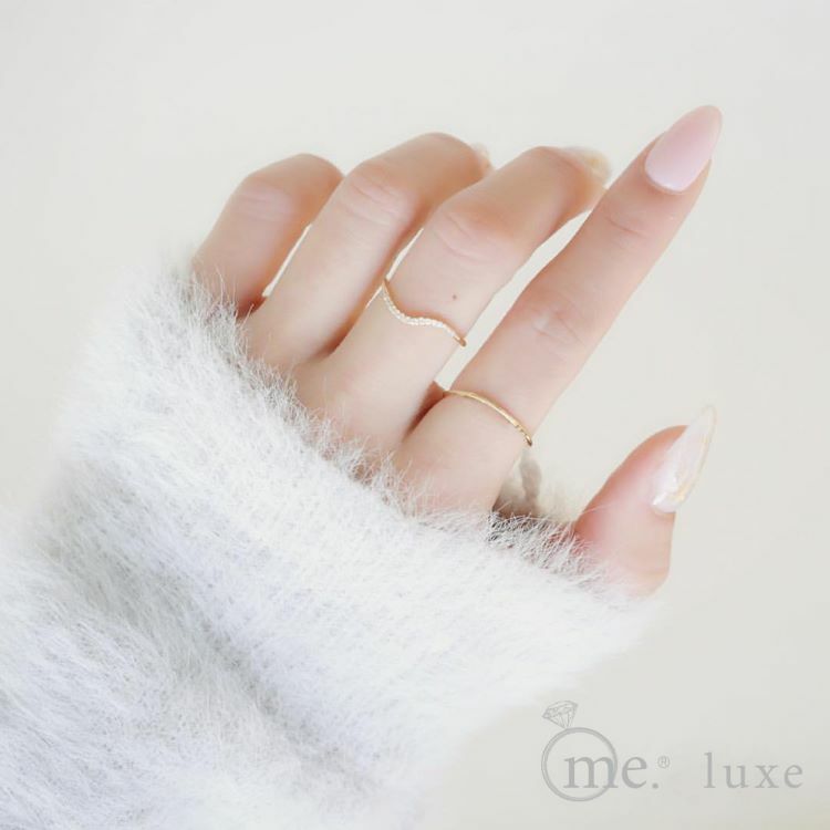 利用8分15顆鑽石排列,大S弧形設計的鑽石線戒,鑽石的璀璨光芒攀服在指間,不論是單戴或是疊戴都很適合的單品戒指