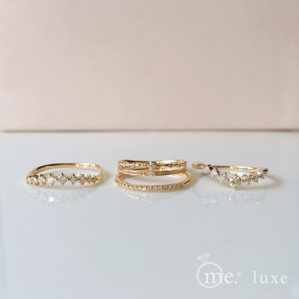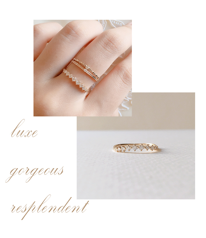 微微的弧度,如銀河般劃破天際,4種尺寸的鑽石鑲崁形成美麗的層次感;優美的弧度讓手指更纖長,更方便疊搭設計