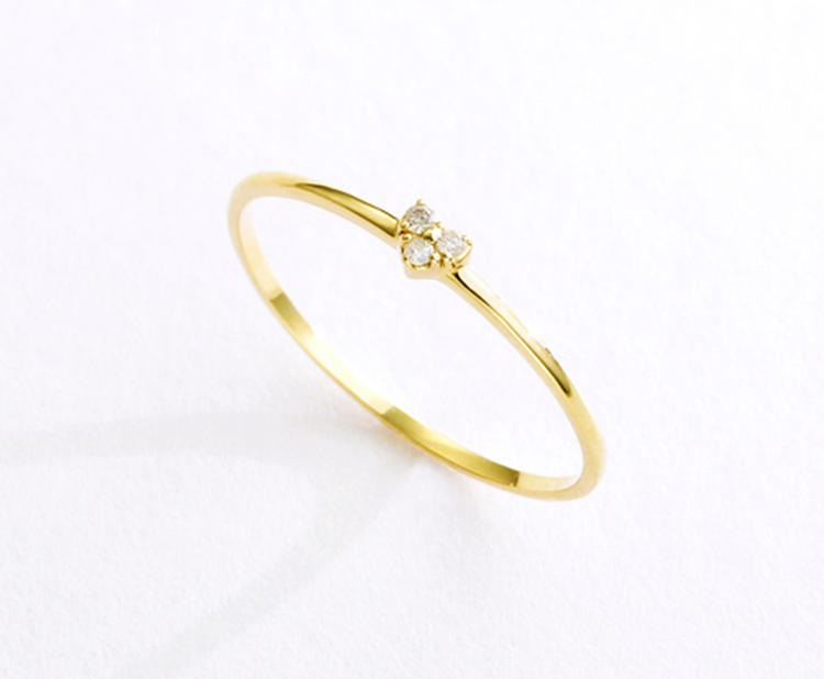 精緻小巧的3顆鑽石設計,堆疊出愛心形狀,能與各式戒指疊戴,是輕珠寶戒指的必買商品。