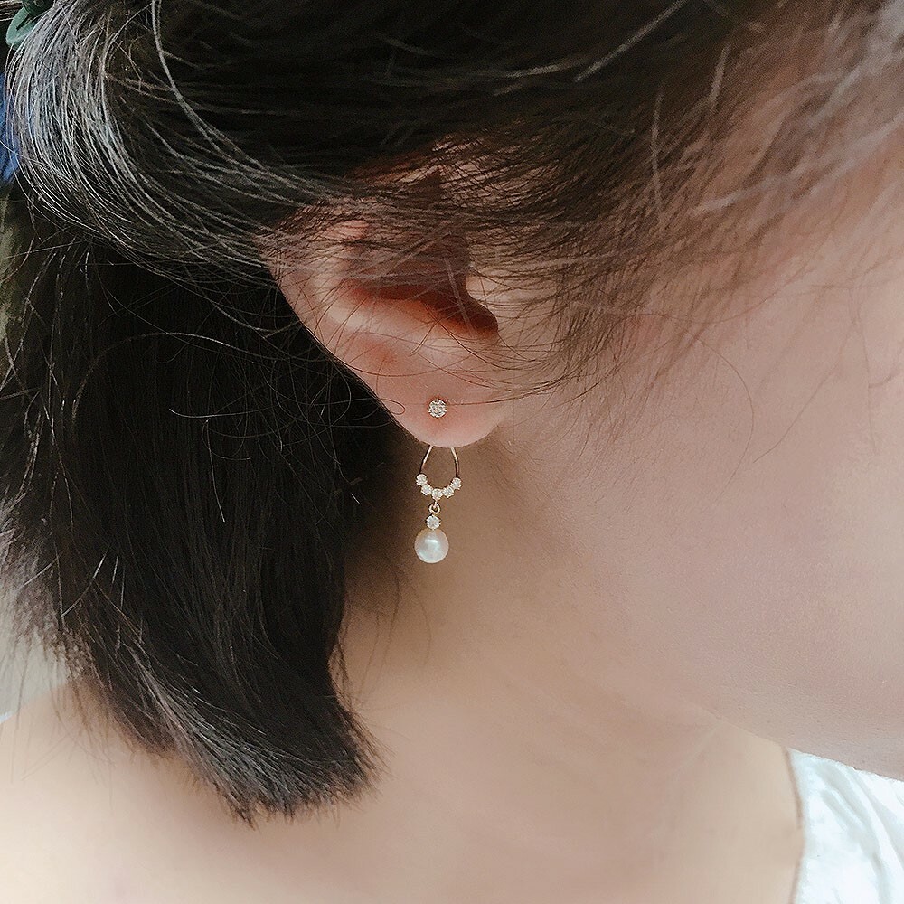 簡單的鋯石配上天然珍珠製作而成,此款耳環有多種佩戴方式