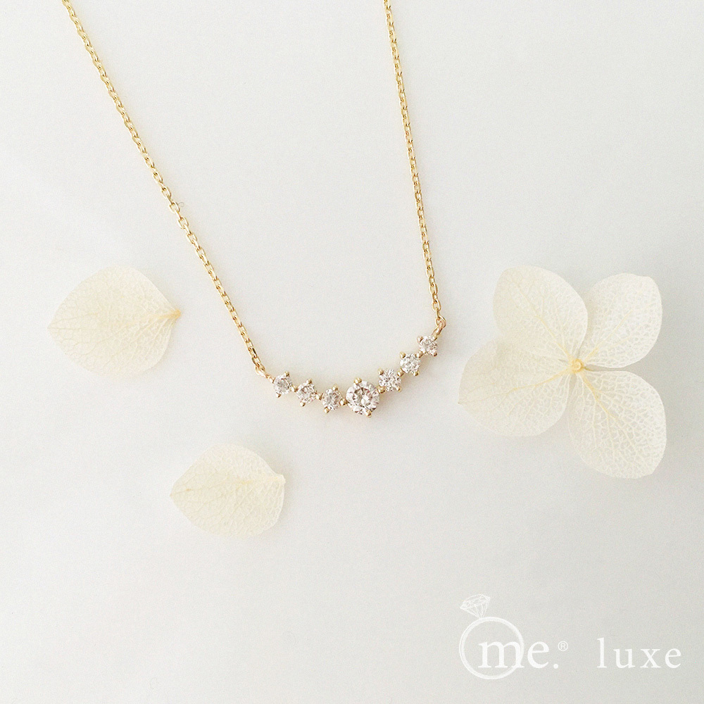 左右各3顆中間鑲崁明亮的8分天然鑽石,迷人的微笑弧度如天上閃亮繁星,更有層次感